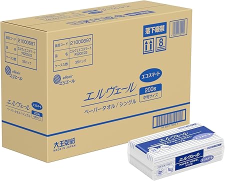 エルヴェールペーパータオル エコスマート シングル(200枚入) 中判